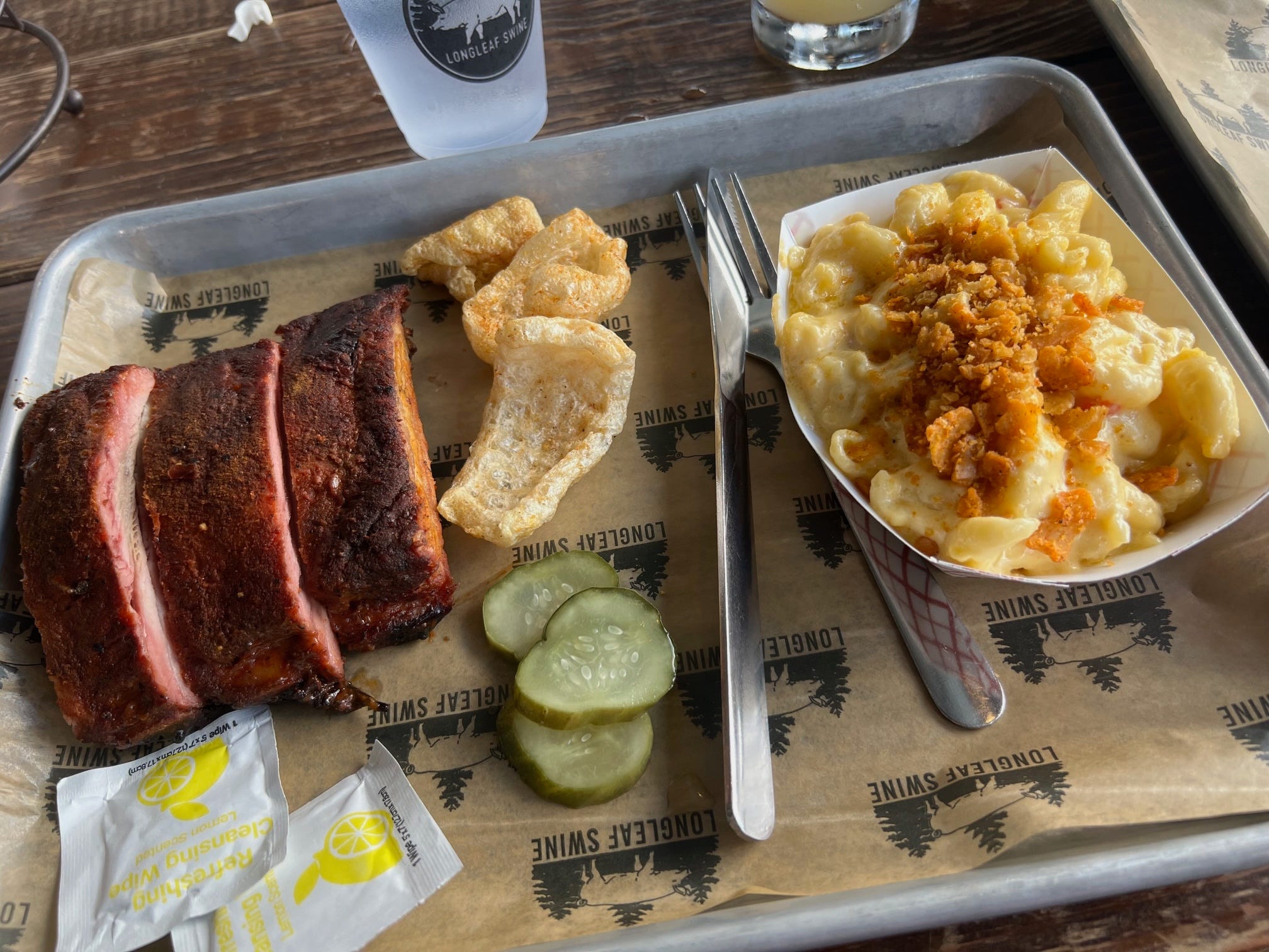 Spare Ribs tray with pimento mac-n-cheese ($17)